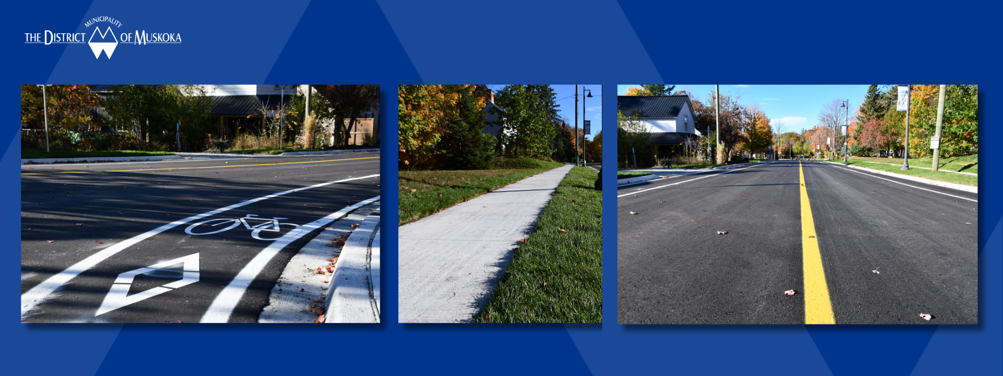 Upgrades to James St. with a fresh surface treatment, complete with new paint markings, temporary pedestrian crosswalk and adjusted stop bars at the James St./Muskoka Rd. intersection (near Shoppers Drug Mart).