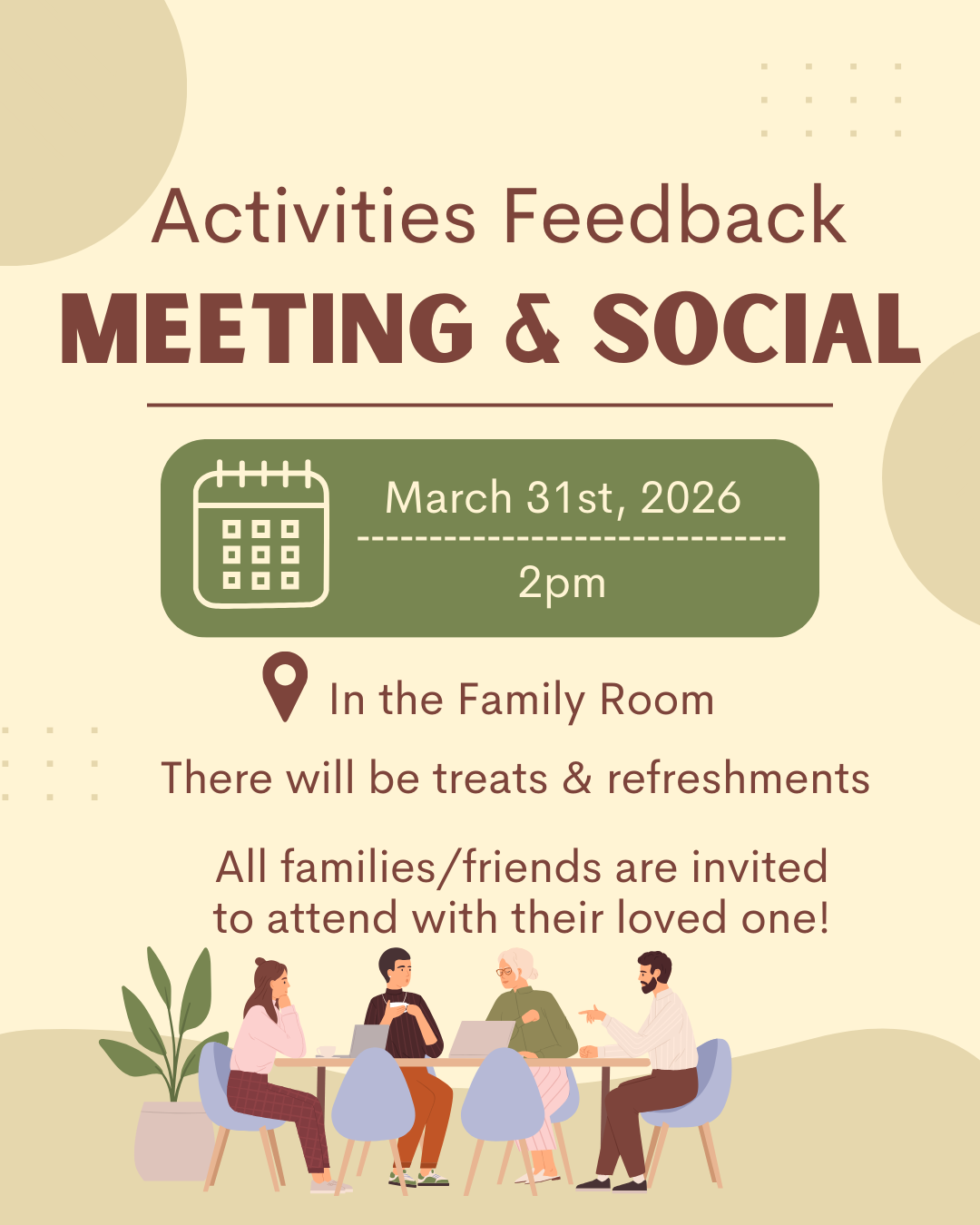 Starting at 10:00 am in the Country Kitchen. Coming to connect with other family members and caregivers.